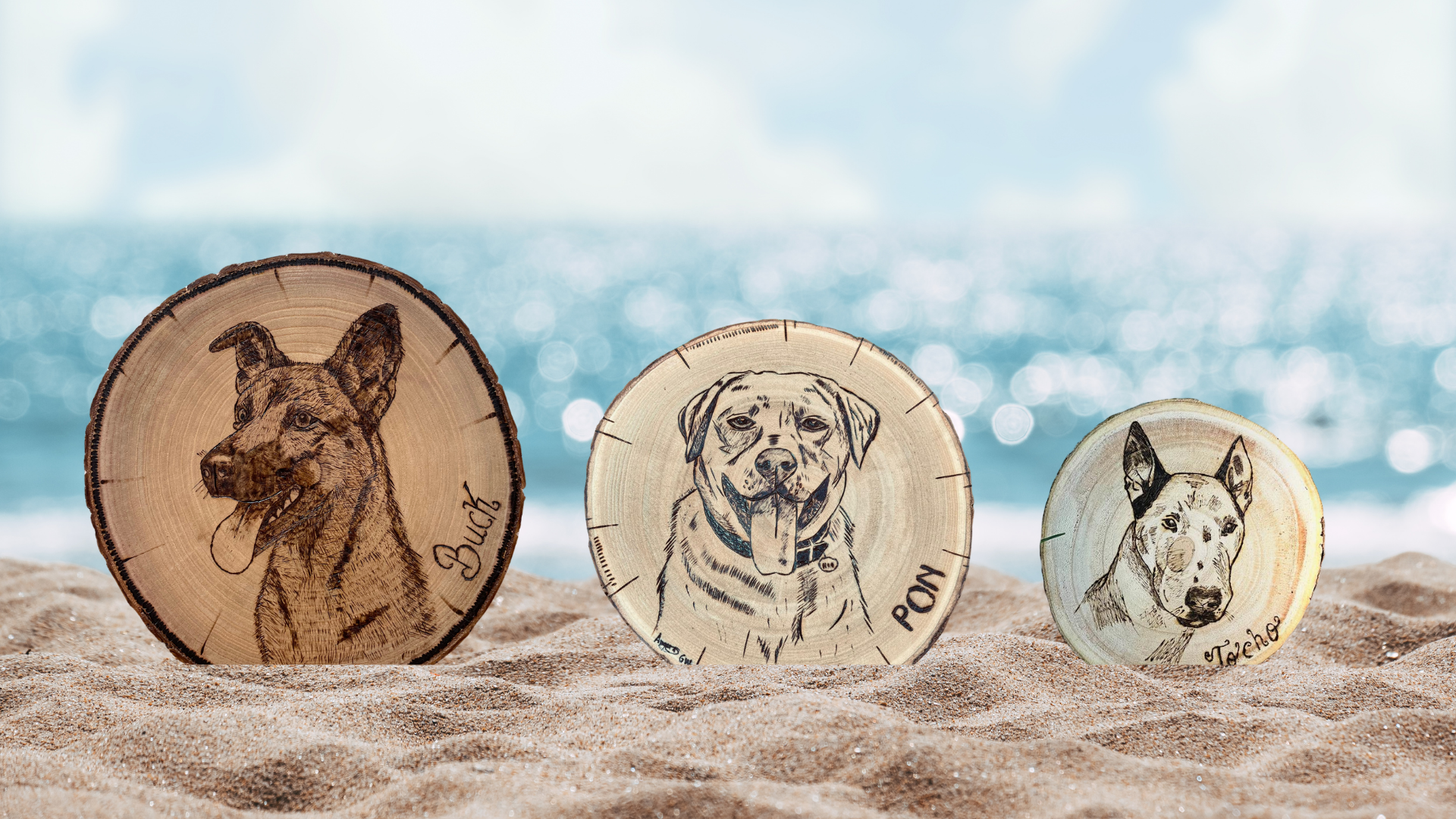 Retratos personalizados de tus mascotas en madera.